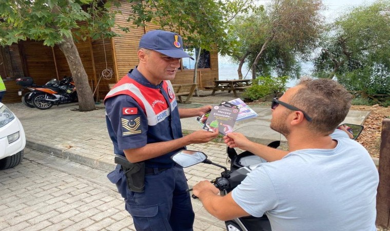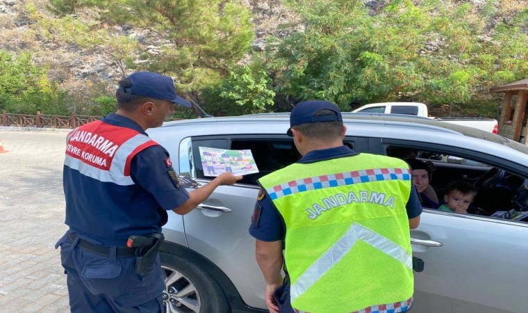 Aydın İl Jandarma Komutanlığı Çevre Doğa ve Hayvanları Koruma Tim Komutanlığı tarafından Kuşadası Dilek Yarımadası Milli Parkı’nı ziyarete gelen vatandaşlara; çevre, doğa sevgisi bilincinin aşılanması farkındalık oluşturması hedefli çevre temizliği ile sıfır atık konularında ’Temiz Doğa Temiz Gelecek’ mottosuyla bilgilendirme yapıldı. Yaz mevsimi nedeniyle risk oluşturan orman yangınlarına yönelik bilgilendirmelerin de yapıldığı çalışma çerçevesinde ’her şey elimizde’ mottosuyla ’ormanlık alanlarda dikkat edilmesi gereken kurallar’ başlığı adı altında bilgilendirme broşürleri dağıtıldı.