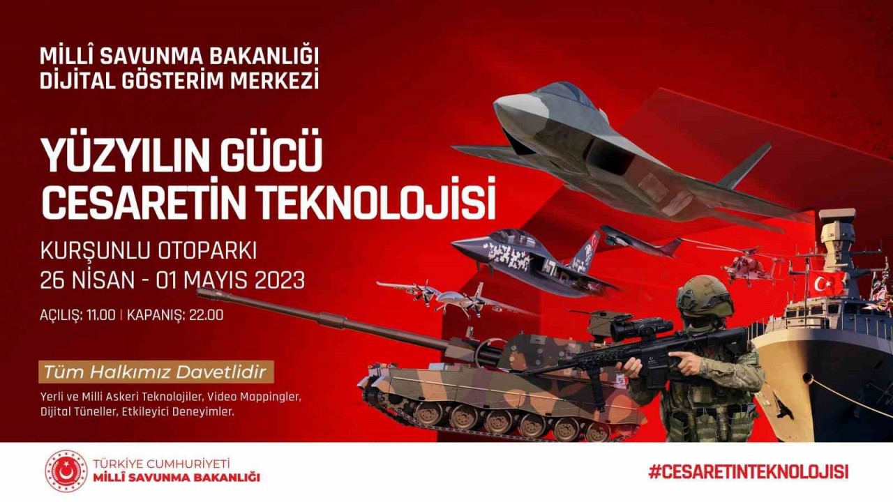 Türk Silahlı Kuvvetleri (TSK) envanterinde bulunan yerli ve milli silah, araç, gereç, teçhizat, mühimmat ve donanımları Kayserili vatandaşlarımızla buluşturmak amacıyla Milli Savunma Bakanlığı Dijital Gösterim Merkezi Kayseri Kurşunlu Otoparkında 26 Nisan-1 Mayıs tarihleri arasında vatandaşlarımızın ziyaretine açılacak. ’Yüzyılın Gücü - Cesaretin Teknolojisi’ mottosuyla bir ‘deneyim merkezi’ olarak açılan Milli Savunma Bakanlığı Dijital Gösterim Merkezi’nde maketler, dijital gösterimler ve 3D animasyon filmlerle ülkemizin savunma sanayiinin kat ettiği aşama ve TSK’nin modernizasyonu anlatılıyor. Dünyanın ilk SİHA gemisi olarak TCG Anadolu, Atak Helikopteri, Siha ile 120 ürünün sergilendiği MSB Dijital Gösterim Merkezi 26 Nisan - 1 Mayıs tarihleri arasında Kurşunlu Otoparkında halkın ziyaretine açık olacak.