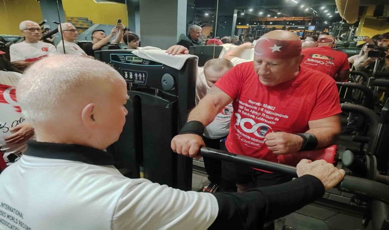 Bakırköy’de 76 yaşındaki milli sporcu Hayrettin Sönmez, Cumhuriyet’in 100. yılında 25 dakikada 111 ton 700 kilogram ağırlık kaldırarak rekor kırdı.