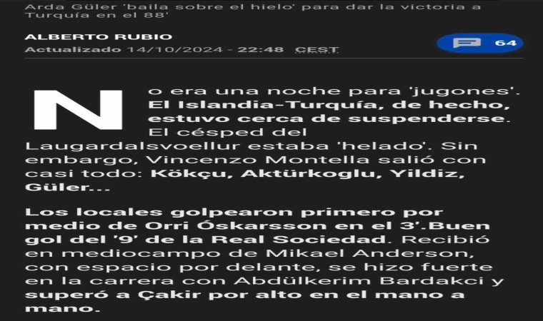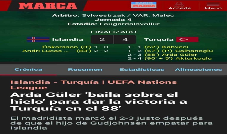 Estadio Deportivo da Arda Güler’in, İzlanda mücadelesinin son dakikalarında attığı golle Türkiye Milli Takımı’nda liderliği üstlendiğinden bahsetti.