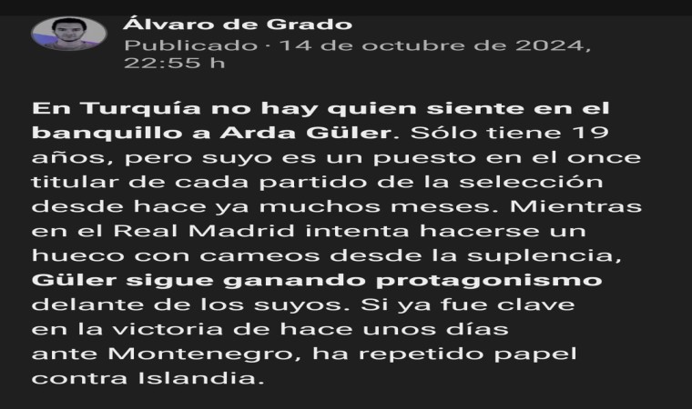 İspanyol Defansa Central, Arda Güler’in Türklere zafere getirdiği başlığını atarken, Arda’nın da Real Madrid forması giyen futbolcular arasında en önemli performansı sergileyen oyuncu