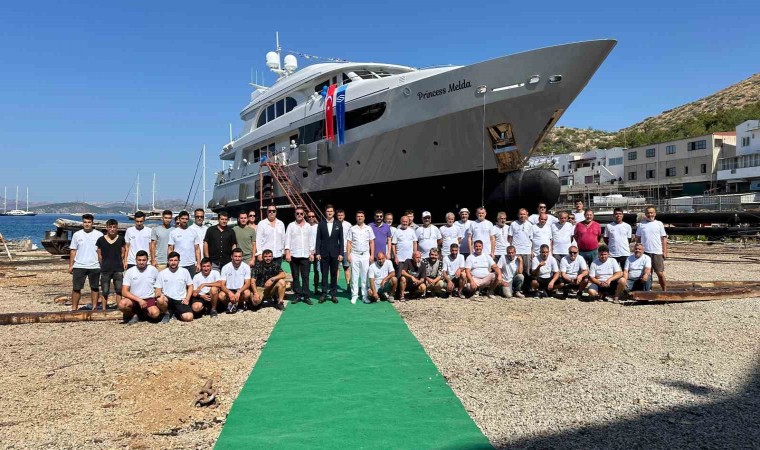 Bodrum’da üretilen milyon dolarlık, 42 metre uzunluğunda 8,5 metre genişliğindeki “Prenses Melda” isimli tekne, düzenlenen törenle suya indirildi.