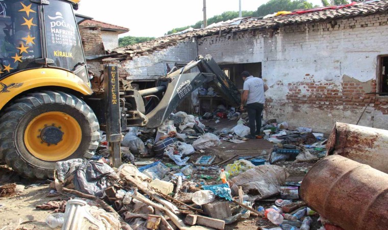 Aydın’ın Germencik ilçesinde mahalle sakinlerinin şikayeti üzerine yapılan incelemede, müstakil ev adeta çöp deposu çıktı. Bir haftadır devam eden temizlik çalışmalarında 20 kamyon çöp çıkarılırken, evde yalnız yaşayan 65 yaşındaki adamın, ekiplerin çalışmaya ara verip dinlendiği sırada evi tekrar çöple doldurduğu belirlendi. Evi kıyafetle dolu olmasına rağmen aylardır aynı kıyafetle dolaşan ve çöplerin içinde yatıp kalkan adamın maddi durumunun ise iyi olduğu öğrenildi.