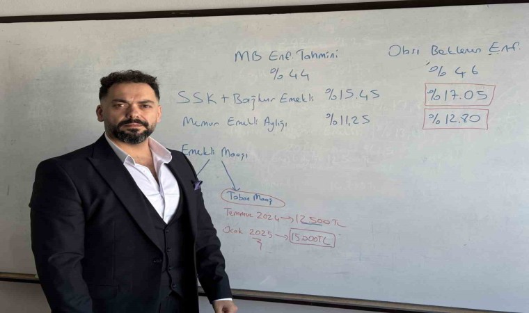 Merkez Bankası’nın yüzde 44’lük bir enflasyon beklentisi olduğunu ifade eden Doç. Dr. Abdulkadir Yüksel, “Piyasa yüzde 44’ü tam olarak satın almış durumda değil. Yüzde 46’lık bir bekleyişin olduğunu ifade edebiliriz. Merkez Bankası bahsettiğimiz gibi enflasyon tahmininin yüzde 44 olarak belirledi. Fakat piyasada beklenen enflasyon oranı yüzde 46’dır. Biz bu iki muhtemel duruma karşılık emeklilerin alabilecekleri ücret ve maaş zammını hesapladık. Yüzde 44’lük bir enflasyon beklentisi gerçekleşirse SSK ve BAĞ-KUR emeklileri yüzde 15. 45 oranında bir zam alacaklar. Memur emekli aileler ise yüzde 11.25 şeklinde olacaktır. Fakat piyasada beklediğimiz enflasyon oranı yüzde 46 olduğu için yukarıda bahsettiğim rakamların daha muhtemel olduğunu söyleyebilirim. Yüzde 46’lık bir enflasyon gerçekleştiğinde SSK ve BAĞ-KUR emeklileri yüzde 17.05 oranında bir zam alacaklardır. Yine memur emeklileri de yüzde 12.80 oranında bir zam alacaklardır. Tabii ben bu şekilde kalacağını zannetmiyorum. AK Parti çevrelerinde artı yüzde 8’lik bir refah payının verileceği ifade ediliyor. Emekli maaşından bahsederken 2 unsuru açıklamamız lazım. Birincisi kök maaş, ikincisi taban maaştır. Kök maaş, örnek vermek gerekirse emeklinin 8 bin liralık maaşı taban maaşta en düşük emekli maaşının çıkarıldığı rakam olan 12.500 TL’dir. Ocak ayında bizim beklentimiz en düşük emekli maaşının 15 bin TL’ye çıkartılması ve ek yüzde 8’lik bir refah artışıdır” dedi.