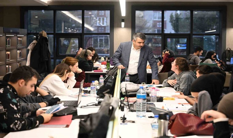 Kütüphanesi’ni ziyaret eden Başkan Oktay Yılmaz, sınavlara hazırlanan gençlerle sohbet etti ve sınavlarında başarılar diledi.