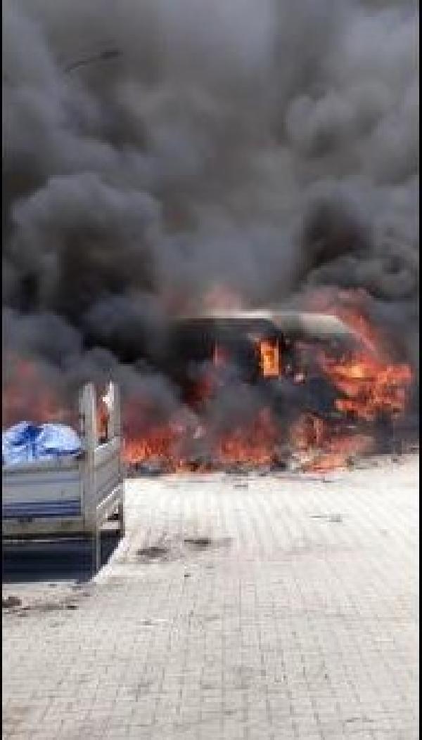 Küçük Sanayi Sitesi'nde park halindeki bir minibüs, henüz sebebi bilinmeyen nedenle alev aldı. Minibüsten çıkan duman, gökyüzünü kapladı. Yangın itfaiye ekipleri tarafından söndürülürken, minibüs kullanılamaz duruma geldi. Yangın ile ilgili inceleme başlatıldı. (DHA)