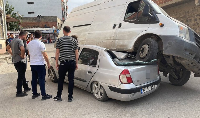 İlginç kaza sabah saatlerinde ilçenin Hayriye Mahallesi’nde meydana geldi. Alınan bilgilere göre, 34 FID 97 plakalı minibüs, kontrolden çıkarak park halindeki bir araca çarptı, daha sonra da park halindeki başka bir aracın üstüne çıkan minibüs, altındaki otomobili yaklaşık 10 metre sürükledikten sonra durabildi. Kaza sonrası minibüs sürücüsü olay yerinden kaçarken polis kaza ile ilgili inceleme başlattı.