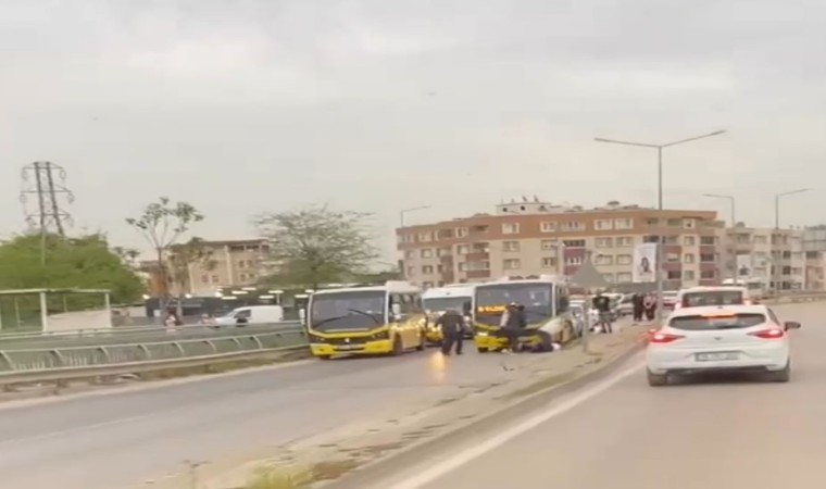 Olay, Nilüfer ilçesi Odunluk Mahallesi’nde meydana geldi. İddiaya göre, yolcu dolu araçla seyir halinde olan iki minibüs şoförü; yol verme tartışmasına girdi. Artan tansiyon sonrası araçtan inen taraflar ne yolculara, ne de trafiğe aldırış etmeden bir anda kavgaya tutuştu. İki şoförün birbirine yumruk ve sopayla saldırdığı anlar kameraya yansırken, kavgayı çevredekiler güçlükle ayırdı.