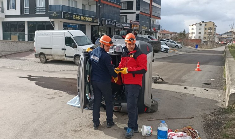 Bolu’da minibüsle çarpışan otomobilin yan yatması sonucu 1 kişi yaralandı.