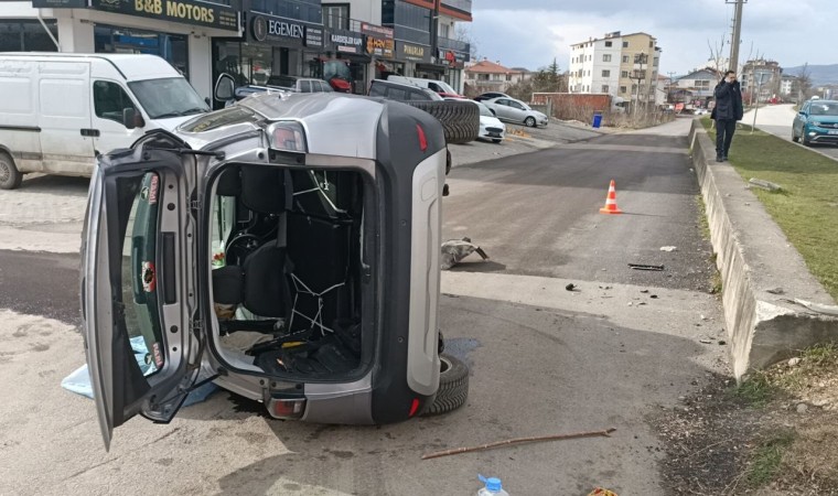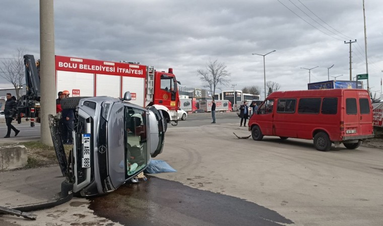 Bolu’da minibüsle çarpışan otomobilin yan yatması sonucu 1 kişi yaralandığı kaza güvenlik kamerasına yansıdı.