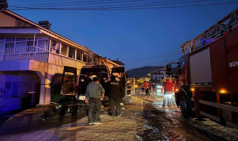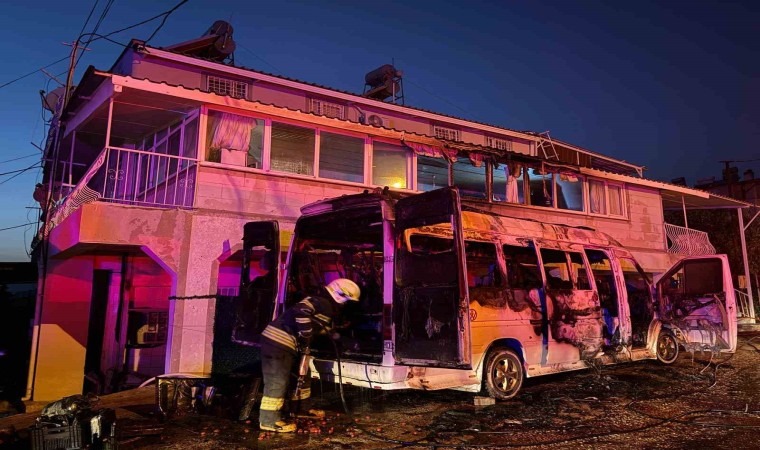 Muğla’nın Fethiye ilçesinde minibüste çıkan yangın yanındaki binaya sıçradı. Minibüs tamamen yanarken, evde de maddi hasar meydana geldi.