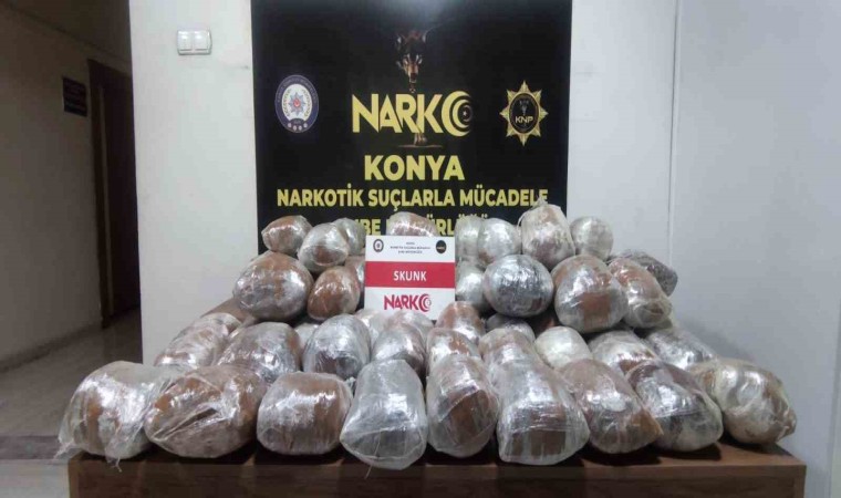 Konya Emniyet Müdürlüğü Narkotik Suçlarla Mücadele Şube Müdürlüğü ekiplerinin zehir tacirlerine karşı yaptığı uygulamada, şüphe üzerine durdurulan araçtaki zuladan 71 parça halinde paketlenmiş onlarca kilo uyuşturucu madde ele geçirildi.