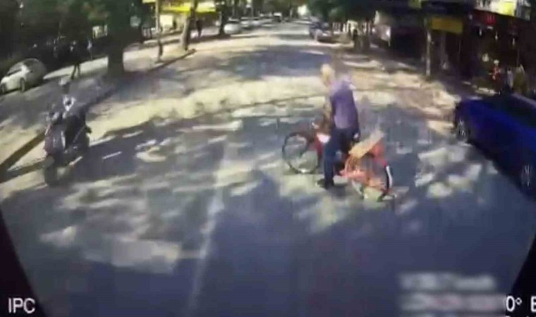 Kaza anı minibüsün araç kamerasına saniye saniye yansıdı. Araçlara yeşil ışığın yandığı sırada bisikletlinin karşıya geçmeye çalıştığı görüldü.