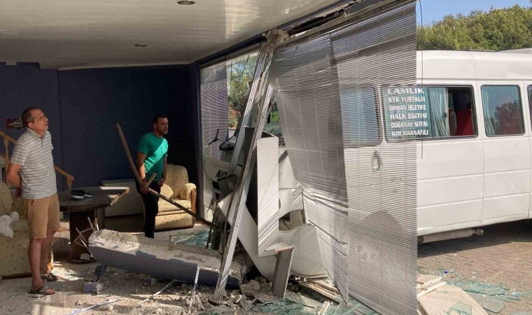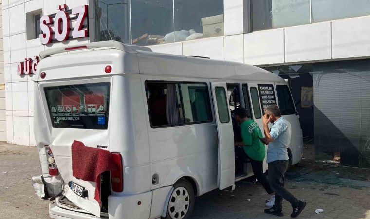 Olayı anlatan işletme sahibi Süleyman Özdemir, "Bir minibüs başka bir minibüse arkadan vurarak bizim salonun yazıhane bölümüne iteklemiş. Camları ve taşıyıcı kolonu kırarak minibüsün bir kısmı içeri doğru girmiş. Çok şükür can kaybı yok, 2 tane hafif yaralı var" dedi.