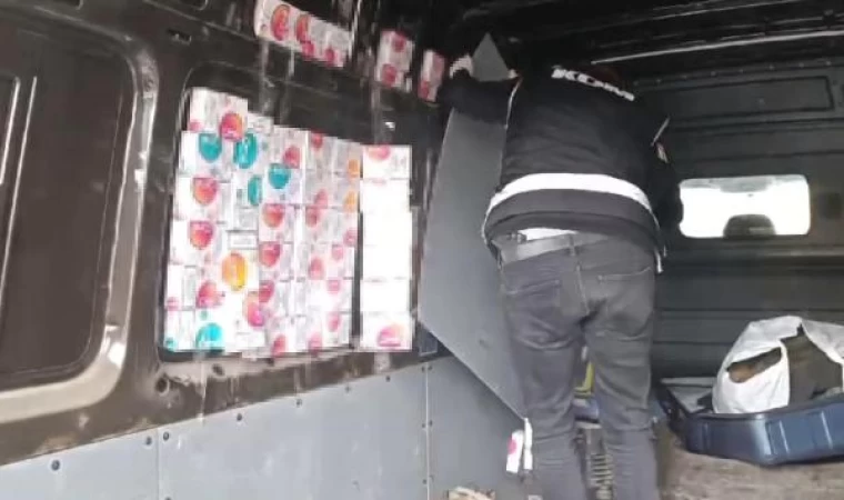 Minibüsün gizli bölmelerinde 6 bin paket kaçak sigara ele geçirildi