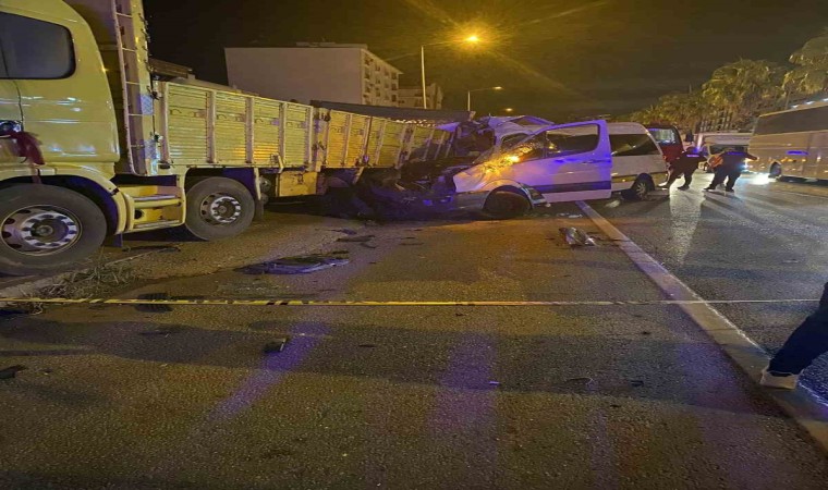 Antalya’nın Serik ilçesinde tur minibüsünün park halindeki kamyona arkadan çarpması sonucu yaşanan trafik kazasında ilk belirlemelere göre 2 kişi öldü, 9 kişi yaralandı. Minibüsün kamyona ok gibi saplandığı anlar güvenlik kamerasına yansıdı.
