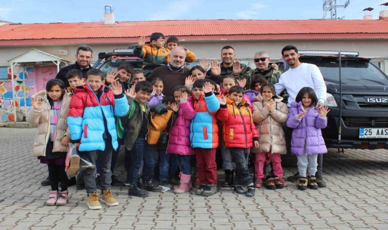 Erzurum’da bir grup off-road tutkunu ve hayırsever köy okullarında “Minik eller üşümesin” diyerek yollara çıktı ve çocukların yüzünü güldürdü.