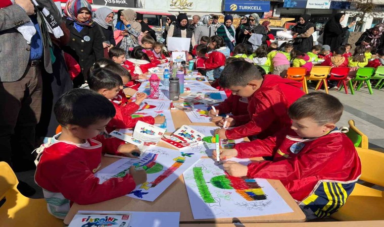 Filistin’i çok sevdiğini söyleyen 4 yaşındaki Nazlı Gül Şahin, ”Bugün boyama yaptık. Filistin bizim için çok önemli. Filistin’i koruyoruz biz. Onu çok seviyoruz. Filistin için bunu kendimiz yaptık” dedi.