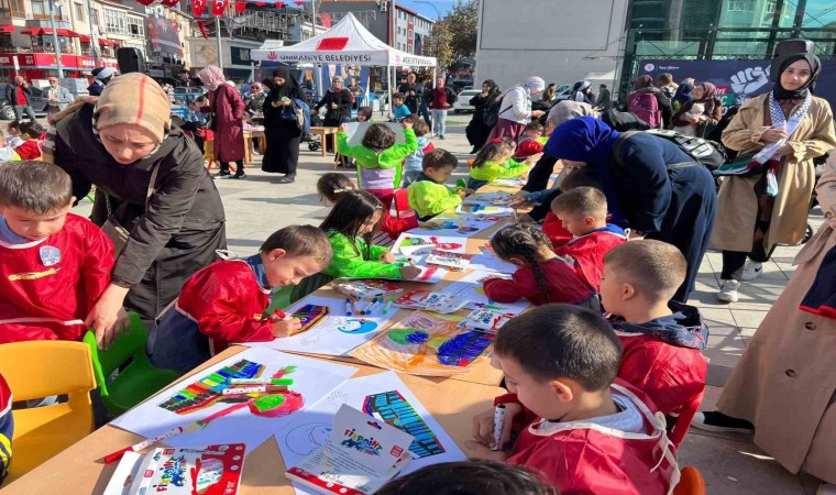 Ümraniye Belediyesi, İsrail’in Gazze’deki masum Filistin halkına yaptığı zulmü kınamak ve farkındalık oluşturmak için 15 Temmuz Şehitler Meydanı’nda bir etkinlik düzenledi. Etkinlikte, 4-6 yaş grubundaki yüzlerce Kur’an kursu öğrencisi, Filistin ve Mescid-i Aksa temalı boyama kağıtlarını boyadı.