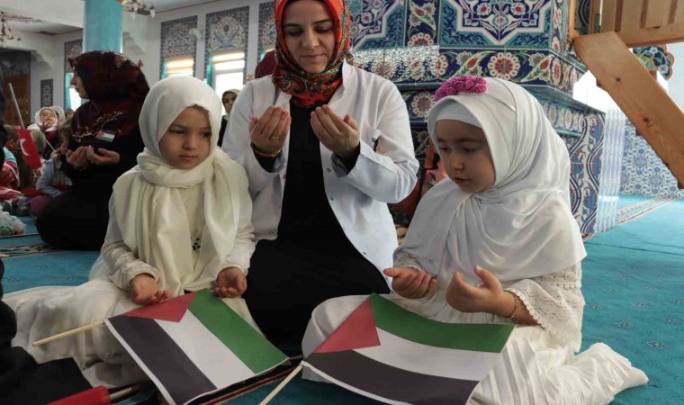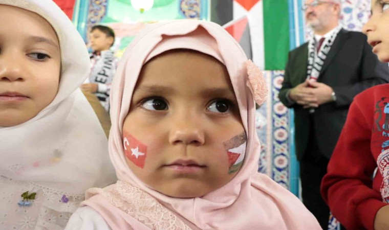 Kayseri’de 4-6 yaş Kur’an kurslarında eğitim gören 2 bin çocuk Filistin’de yaşanan katliamların sona ermesi için dua etti.
