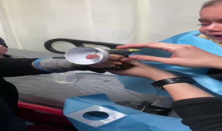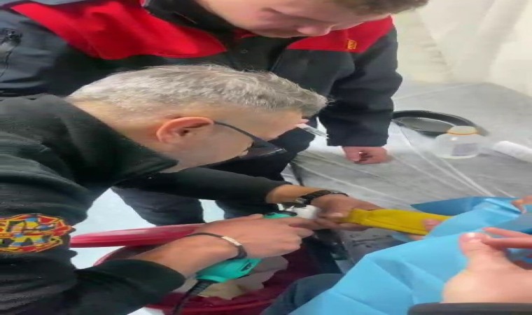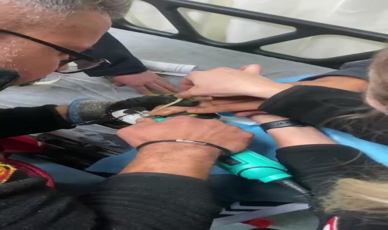 İtfaiye ekipleri, dikkatli bir şekilde zili keserek miniğin parmağını kurtardı.