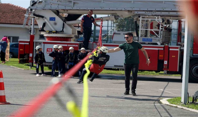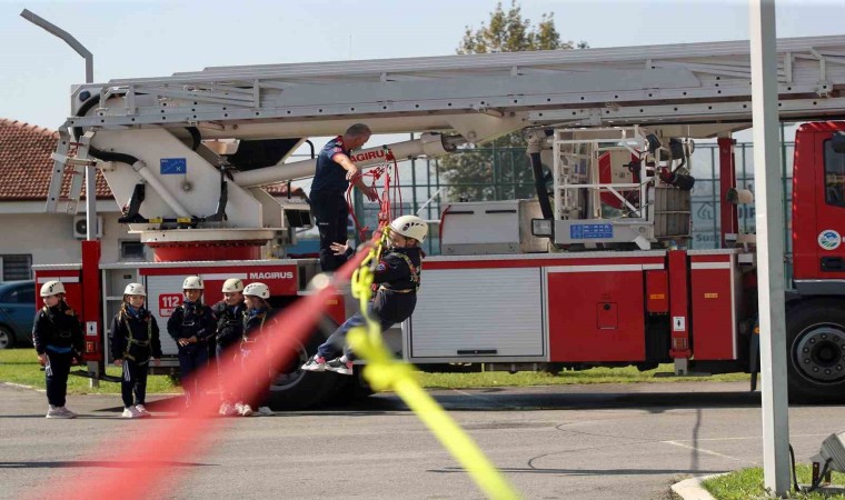 Yangın evine suyla müdahale, yatay ve dikey ip hattı gibi aksiyon dolu uygulamalarda yeteneklerini sergileyen minikler, yeterlilik ve dayanıklılık testlerinden geçti. İtfaiye personeli, Atatürk İlkokulu’ndan gelen 35 öğrenci ve özel bir okuldan gelen 20 öğrenciye uygulamalı yangın söndürme eğitimi verdi.