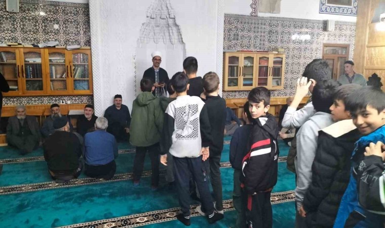 Erzurum’un Palandöken ilçesinde minik kalpler Ramazan ayı boyunca teravih namazı için camiye akın etti.