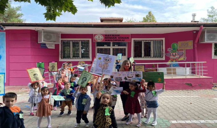 Batman’da anaokulu öğrencileri afiş ve pankartlarla 4 Ekim Dünya Hayvanları Koruma Gününe dikkat çekti.