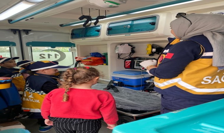 Eğlenceli geçen eğitimin ardından okulun bahçesine getirilen ambulansa binerek, aracın içindeki cihazlar hakkında bilgi sahibi olan çocuklar, ambulansta hastaya yapılan müdahaleleri uygulamalı olarak öğrenme fırsatı buldu.