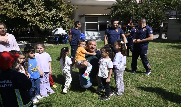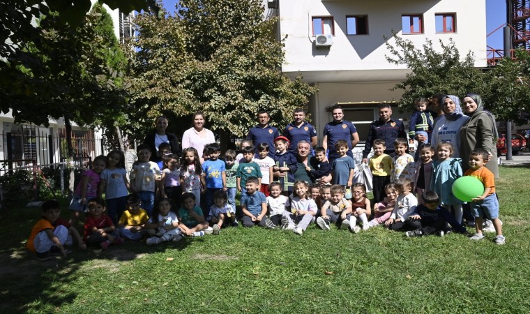 Manisa Büyükşehir Belediyesi İtfaiye Dairesi Başkanlığı, İtfaiye Haftası kapsamında anaokulu öğrencilerini konuk etti. Minik öğrenciler, itfaiye üniforması giyerek temsili yangın söndürme tatbikatı yaptı ve itfaiye araçlarına binerek keyifli anlar yaşadı.