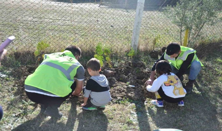 Sinop’un Gerze ilçesinde anaokulu öğrencileri, Cumhuriyet’in 100. yılı için düzenlenen etkinlikte fidan dikimi gerçekleştirdi.