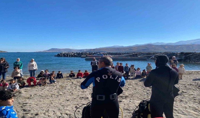 Bitlis Emniyet Müdürlüğü Sualtı Grup Amirliği ekiplerince anaokulu öğrencileri için ekipman tanıtımı ve dalış gösterisi yapıldı.