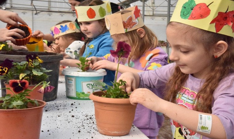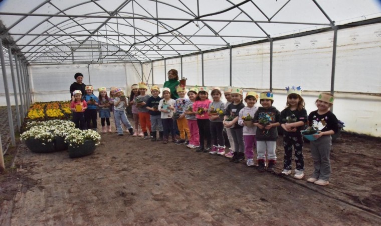 Bilecik’te minik öğrenciler hem itfaiye araçlarını, hem de serada bulunan bitkileri yakından inceledi.