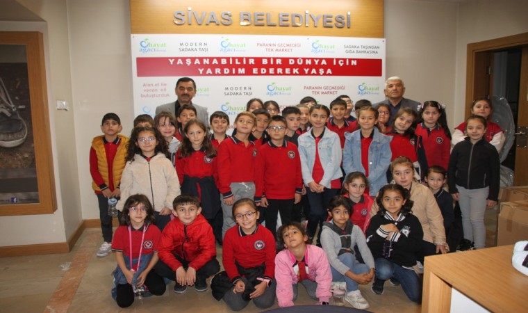 Sivas’ta öğrenciler Hayat Ağacı Derneği bünyesinde faaliyet gösteren Gıda Bankasını ziyaret etti. 3’ncü sınıf öğrencileri kumbaralarında biriktirdikleri paraları Gıda Bankası aracılığıyla ihtiyaç sahiplerine ulaştıracak.