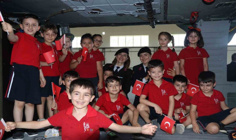 Aydın İl Jandarma Komutanlığı ekipleri kendilerine ziyarete gelen minik öğrencilere tanıtım faaliyetinde bulunarak bayrak hediye etti.