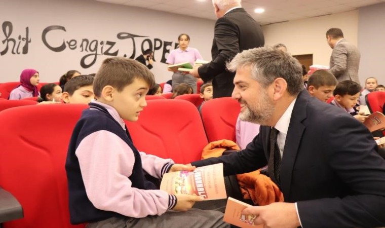 Bilecik’in Gölpazarı ilçesinde Kaymakam Alparslan Sözen ve Belediye Başkanı Hayri Suer çocuklara kitap hediye etti.