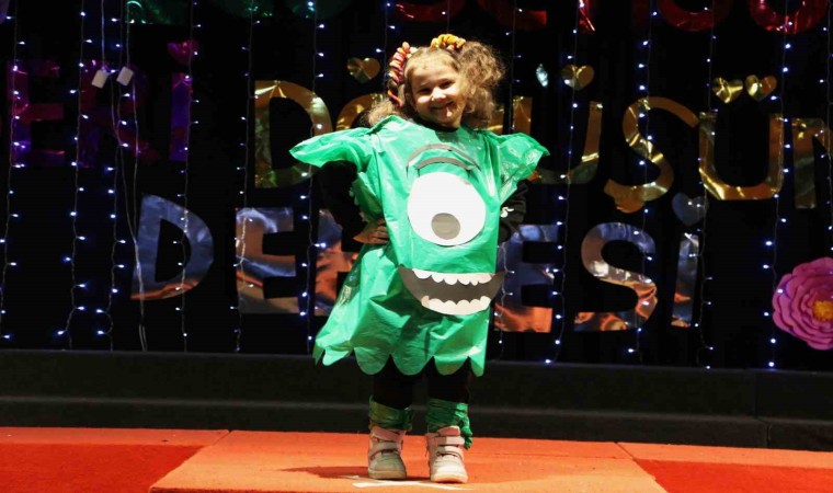 Anaokulu öğrencisi Sercan Efe Kahraman (5) ise, “Bugün okulumuzun düzenlediği projede çok eğlendim. Çöp poşetinden evde kıyafet yaptık. Sonra burada defile gerçekleştirip çalan müzikle eğlendik” ifadelerinde bulundu.