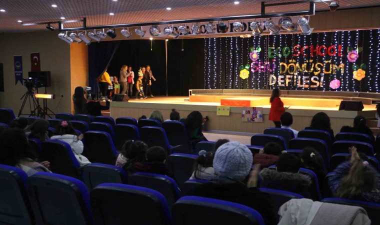 Defilede öğrenciler, hem evlerden hem de okuldan topladıkları atık karton, plastik malzemeler ve poşetlerden öğretmen ve velilerin de yardımı ile yaptıkları kostümleri giydi. Süpermen, Batman, astronot, prenses gibi birçok kostümle podyuma çıkan öğrencilerin defilesi hayranlıkla izlendi. 181 öğrencinin yer aldığı etkinlikte atıkların dönüşümüne dikkat çekildi.