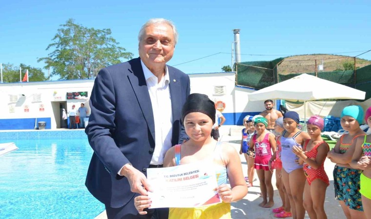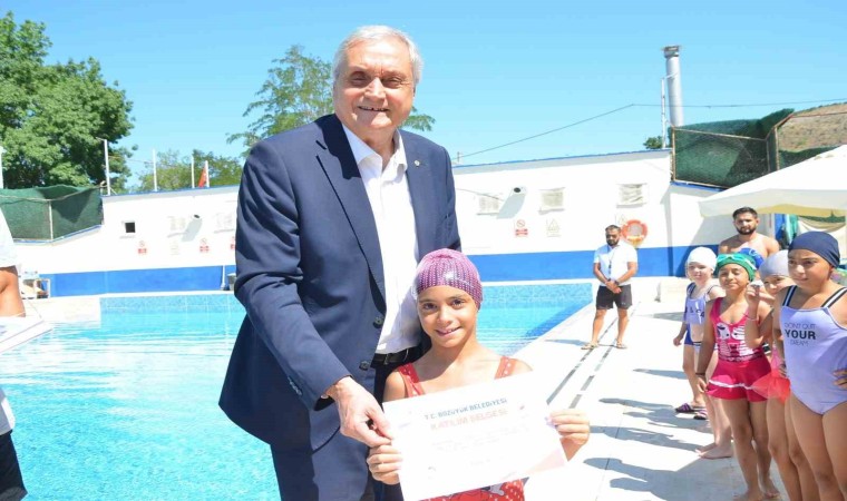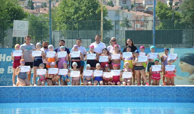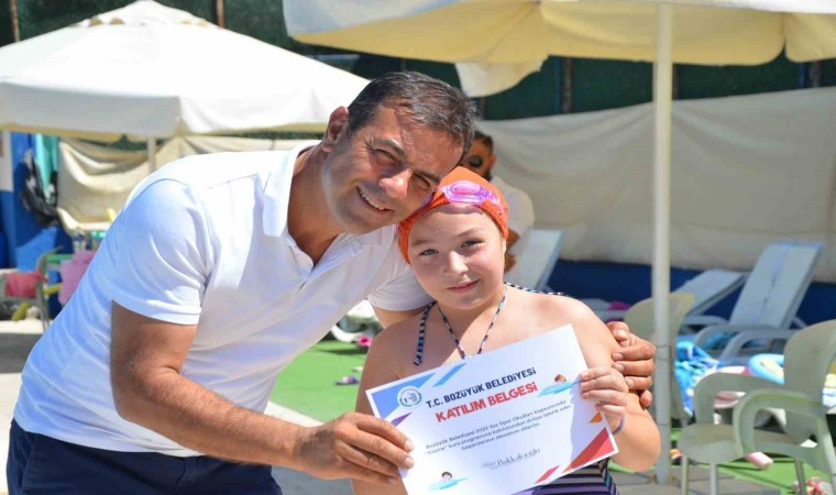 Bozüyük Belediyesi tarafından 7 spor dalında düzenlenen ücretsiz yaz spor okulları branşlarının arasında yer alan yüzme kurslarını başarı ile tamamlayan öğrencilere katılım belgeleri verildi.