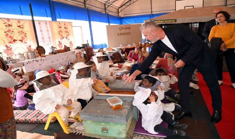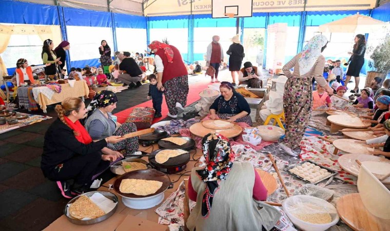 Manavgat Belediyesi Side Kreş ve Gündüz Bakımevi öğrencileri, susam, pamuk gibi ürünleri tanıtırken; gözleme ve sarma yaptı, halı dokuyup, dikiş makinesiyle dikiş dikti.