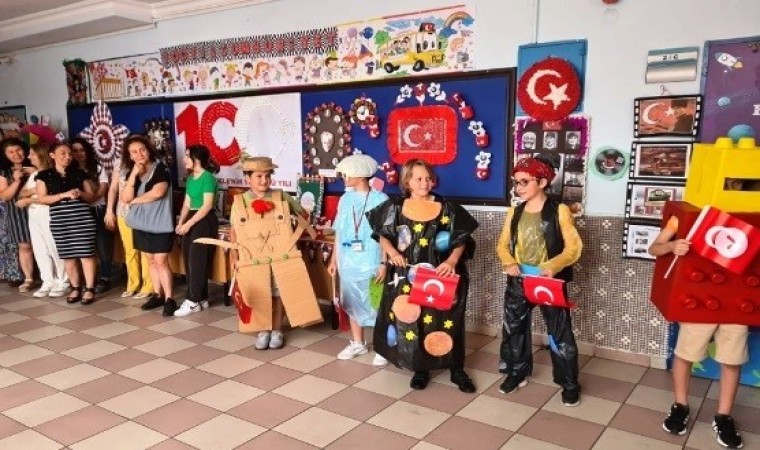 Kuşadası Rahime Bilici İlkokulu öğrencileri, 5-11 Haziran tarihleri arasında kutlanan ’Çevre Koruma Haftası’ kapsamında anlamlı bir etkinlik düzenledi. Çevre koruma bilincinin aşılanması amacıyla Cumhuriyetin 100. yılına ithafen gerçekleştirilen etkinlikte, İngilizce ve sıfır atık temalı yıl sonu sergisi ve defilesi büyük ilgi topladı. Sergide öğrencilerin atık eşyaları kullanarak tasarladıkları elbiselerle yaptıkları defile mankenlere taş çıkartırken, davetlilerden büyük beğeni aldı.