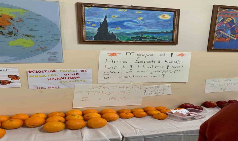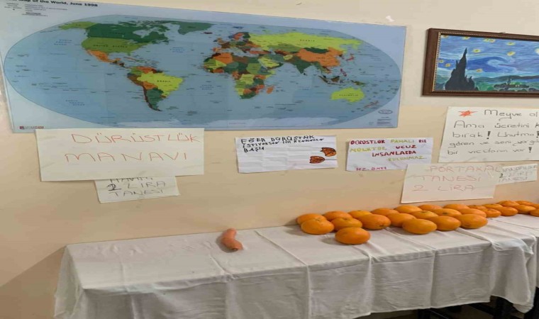 Eskişehir’de Çevreme Duyarlıyım, Değerlerime Sahip Çıkıyorum (ÇEDES) projesi kapsamında ortaokul öğrencileri, satıcısı olmayan Dürüstlük Market’inde dürüstlük konusunu işledi.