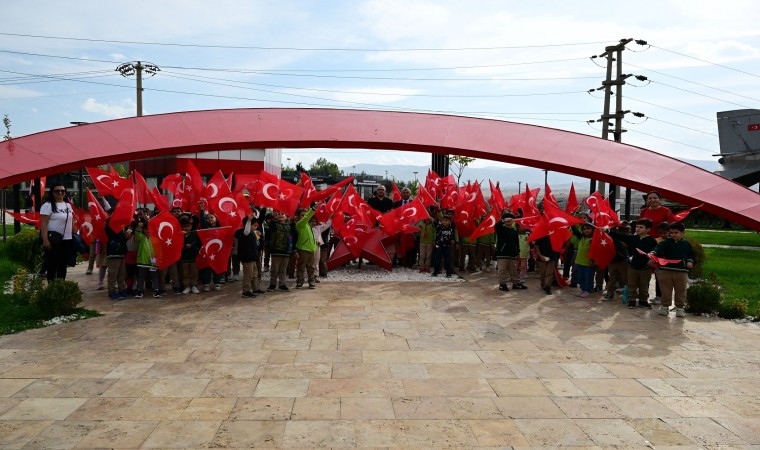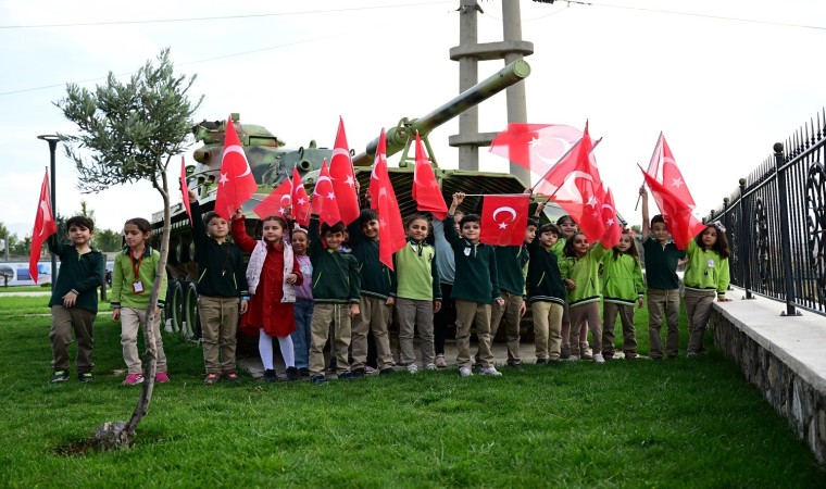 Ellerindeki Türk Bayraklarıyla müzenin dört bir tarafını gezerek hem keyifli anlar yaşayan hem de askeri teçhisatlar hakkında bilgi edinen minik öğrenciler daha sonra kendileri için özel olarak ayarlanan masaların başına geçerek hazırlanan 100 saksıya 100 adet tohum ektiler.
