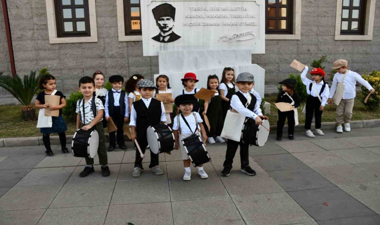 Payas ilçesinde eğitim veren Nursan Anaokulu öğrencileri, Cumhuriyet’in kuruluşunu duyuran gazete satıcılarını canlandırdı. Ellerine davul ve gazete alarak meydana inen miniklerin bu anları renkli görüntülere sahne oldu. Miniklerin gazeteleri vatandaşlara dağıttıkları anlarsa yürekleri ısıttı.
