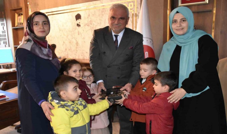 Bilecik’te Hamidiye 4-6 Yaş Kur’an Kursu minikleri, kumbaralarını Filistin için bağışladı.