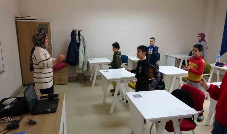 BİTLİS (İHA) – Bitlis’in Tatvan Gençlik Merkezinde verilen İngilizce kursunda minikler hem eğleniyor hem de öğreniyor.