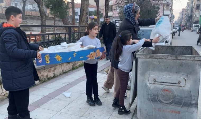 Manisa’nın Alaşehir ilçesinde oyun alanları olan parkın strafor parçalarıyla kirletildiğini gören minik çocuklar elbirliğiyle parklarını temizledi.