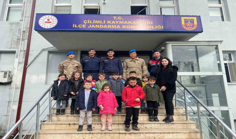 Çilimli ilçesine bağlı Pırpır köyünde bulunan Anaokulu’nda öğrenciler Çilimli İlçe Jandarma Karakolu’nu ziyaret etti. Asker ağabeyleri ile vakit geçiren minikler, araçlara binip, jandarma kepi taktı. Jandarma teşkilatı ile ilgili bilgiler alan minik öğrenciler eğlenceli bir gün geçirdi.