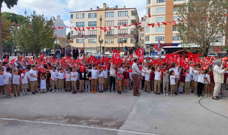 Cumhuriyetin 100’üncü yılı kutlama etkinliklerinde Balıkesir’de ilk okul öğretmen ve öğrencileri program düzenledi. Programda öğrenciler coşkuyla Cumhuriyetin 100’üncü yılını kutladı.