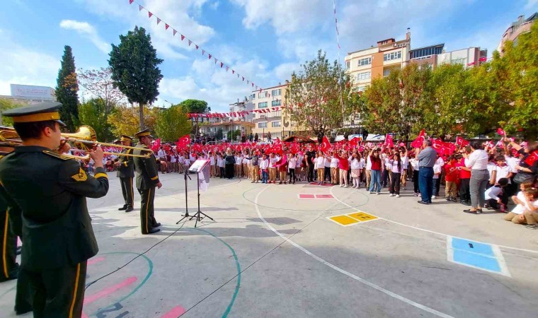 Balıkesir Atatürk İlk Okulu’nda düzenlenen 100. Yıl kutlama etkinleri kapsamında öğrenciler çeşitli gösterilerle keyifli vakit geçirdi. Türk Bayrakları ile yapılan kutlamalarda minikler, Cumhuriyet coşkusunu doyasıya yaşadı. Astsubay Hazırlama Okulu’nun bando gösterileriyle doyasıya cumhuriyet coşkusu yaşayan minikler söylenen marş ve müziklere eşlik ederek Cumhuriyetin 100’üncü yılını kutladılar.